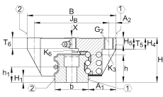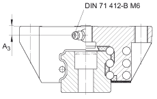 - 對(duì)于從上面安裝: 最大的中間螺紋孔的螺紋深度 T6 + 3 mm