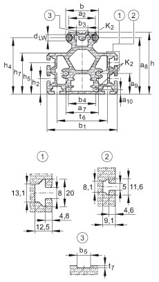 - 導(dǎo)軌的最大長度 L;更長的導(dǎo)軌可分成幾段供貨,并且相應(yīng)地標注。