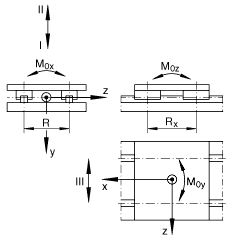 - 基本額定載荷:載荷方向 Z III: 當載荷均勻分布在四個直線球軸承上的基本額定載荷。 基本載荷和扭矩不能同時增加。