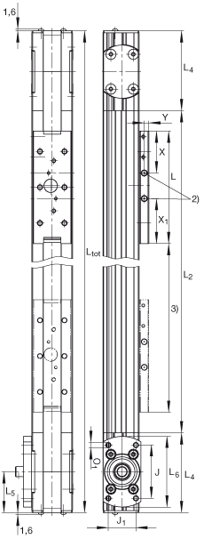 - L2 = 總行程 + L + 40 L tot = 總行程 + L + 40 + 2 x L4。 總行程= 有效行程 + 2 x S(mm)。 注意:允差S指一個安全范圍,至少應(yīng)為40 mm。 最大支撐軌長度2000 mm ;通過協(xié)商可提供更長的支撐軌