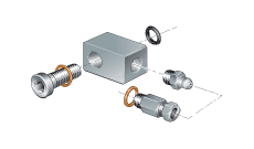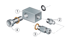 - SMAD.KOE 的組件: 1.) 接頭 3.) 油集中潤(rùn)滑接頭 4.) 安裝螺釘 見(jiàn)圖,但不包括在 SMAD.KOE 中: 2.) 脂潤(rùn)滑嘴(僅用于SMAD..KFE)