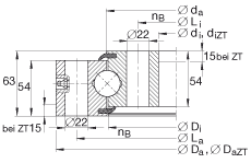 - 適用于帶定心套的軸承(后綴 ZT) 定心套長(zhǎng)度(見零件圖) 公差:-IT8
