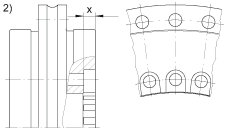 - L-形圈的擴(kuò)孔螺栓對(duì)著軸承孔,見(jiàn)圖 2.) 軸承內(nèi)徑在 X 區(qū)域沒(méi)有支撐。